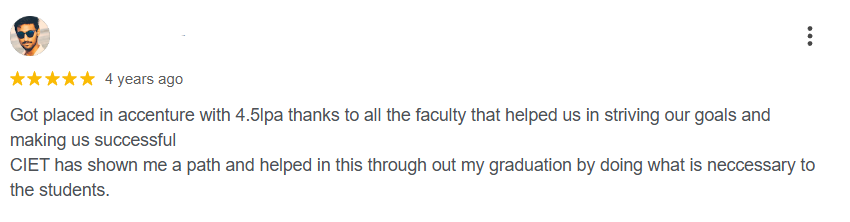 “Chalapathi Institute of Engineering and Technology is one of the best colleges in Guntur district. I completed my bachelor’s degree in this college. So I recommend that cse and ece departments are the best for choosing this college. From one year ciet launched new courses like Artificial Intelligence, Machine learning, Data science and these departments are also good. The whole college is full of trees and very nice atmosphere and the staff are also very helpful to the students.”