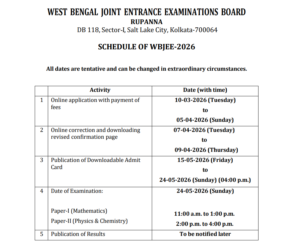 | WBJEE Exam Date | May 24, 2026 |